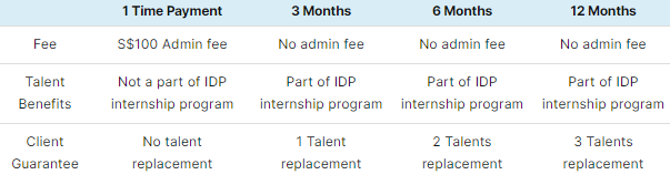 | Talent Benefits | Not a part of IDP internship program | Part of IDP internship program | Part of IDP internship program | Part of IDP internship program |